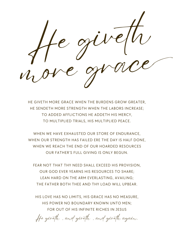 Some days, these are my thoughts, so first of all, I want to assure you that if you have felt any of this, you are not alone. There is no homeschooling mum on this planet (or probably even in the universe, if alien homeschooling mums exist) who hasn’t wondered at least once if she made a monumental mistake. It’s normal. We’ve all had those moments of doubt—when the curriculum doesn’t click, when the kids resist every lesson, or when we constantly feel that we are not enough. But let me remind you of something that God has been whispering to my heart lately: His grace is sufficient. Even on the hard days. Especially on the hard days. Here’s a beautiful hymn for you to tuck away in your heart.